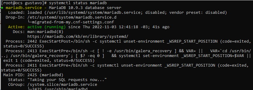 - Verificando se o MariaDB iniciou corretamente,