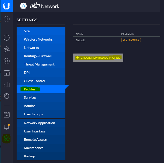 • criar novo perfil em: “Settings → Profiles → + Create New RADIUS Profile”